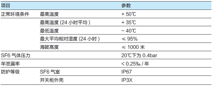 遵循IEC60694标准,对于有别于正常操作的条件下的特殊运行条件,制造商和用户必须取得一致。如果涉及特殊恶劣的运行环境,则必须预先向制造商和供应商咨询。当电气设备安装在海拔高度为1000米以上时,需特殊注明,以便制作时对压力进行调整。