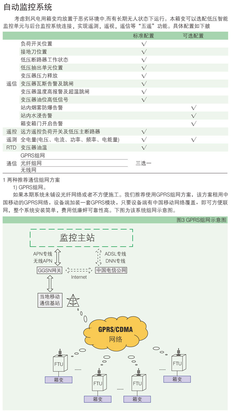 高低压柜分别设置防风雨外壳,两者采用“目”型排列,高压柜门采用网门电磁锁保护措施,可根据用户要求设置避雷器和带电显示器等其他电气元件。